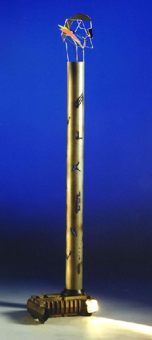 stahlstangen und plexiglas mit versch.lichtquellen, ca 185cm, (1989)